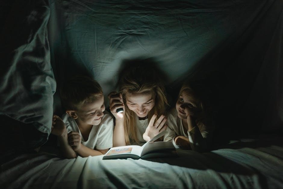 Bedtime stories in PDF format are a powerful tool for fostering a lifelong love of reading in children․ By providing accessible, engaging, and visually appealing tales, PDF stories capture young imaginations and spark curiosity․ Interactive elements and colorful illustrations in PDFs make reading fun, while the convenience of digital access allows parents to share stories anytime, anywhere․ This consistent exposure to storytelling helps children develop language skills, creativity, and emotional intelligence․ Moreover, the ritual of reading together strengthens parent-child bonds, creating a nurturing environment that encourages children to explore the world of books independently, laying the foundation for a lifelong passion for reading․
