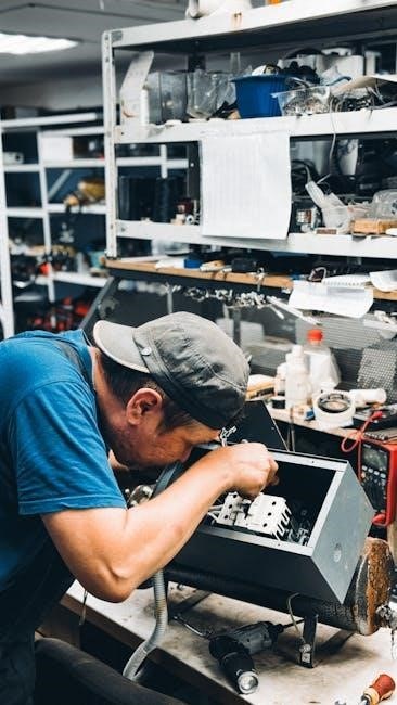 Follow the manual’s sequence precisely to prevent damage or incomplete reassembly. Torque specifications for fasteners are often included, ensuring proper tightening. Reassembly should mirror disassembly in reverse, with careful attention to wiring connections and component alignment.